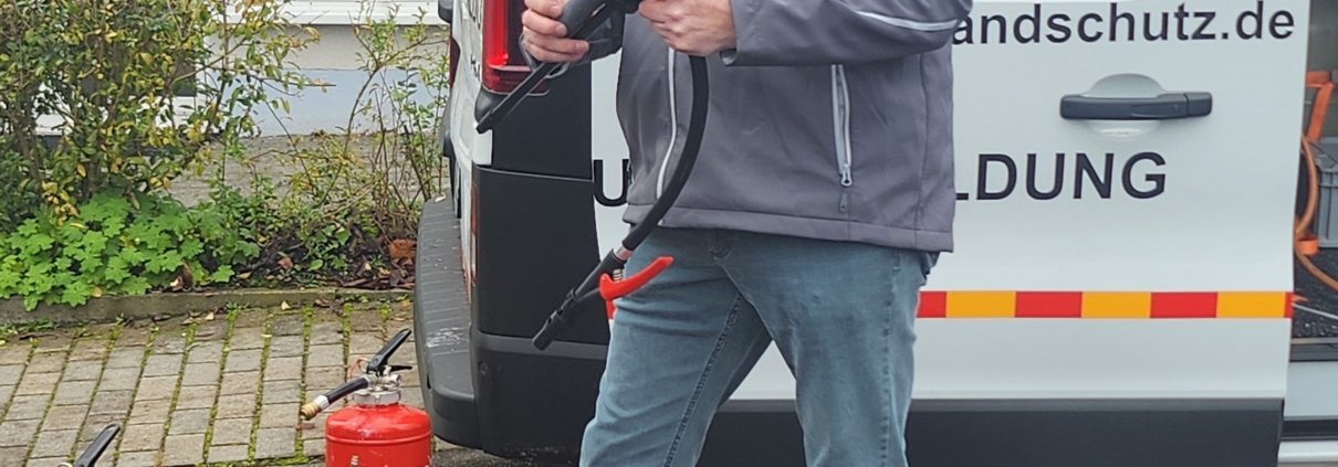 Bei uns gab es dafür eine aktuelle Auffrischung. Von Profis, die sich richtig gut auskennen. Einiges wurde in der Theorie besprochen und gezeigt. Aber dann ging es auch in die Praxis. Wie bedient man denn nun den Feuerlöscher? Wie gut, dass man vorher erfahren hatte, welche unterschiedlichen Feuerlöscher es gibt!